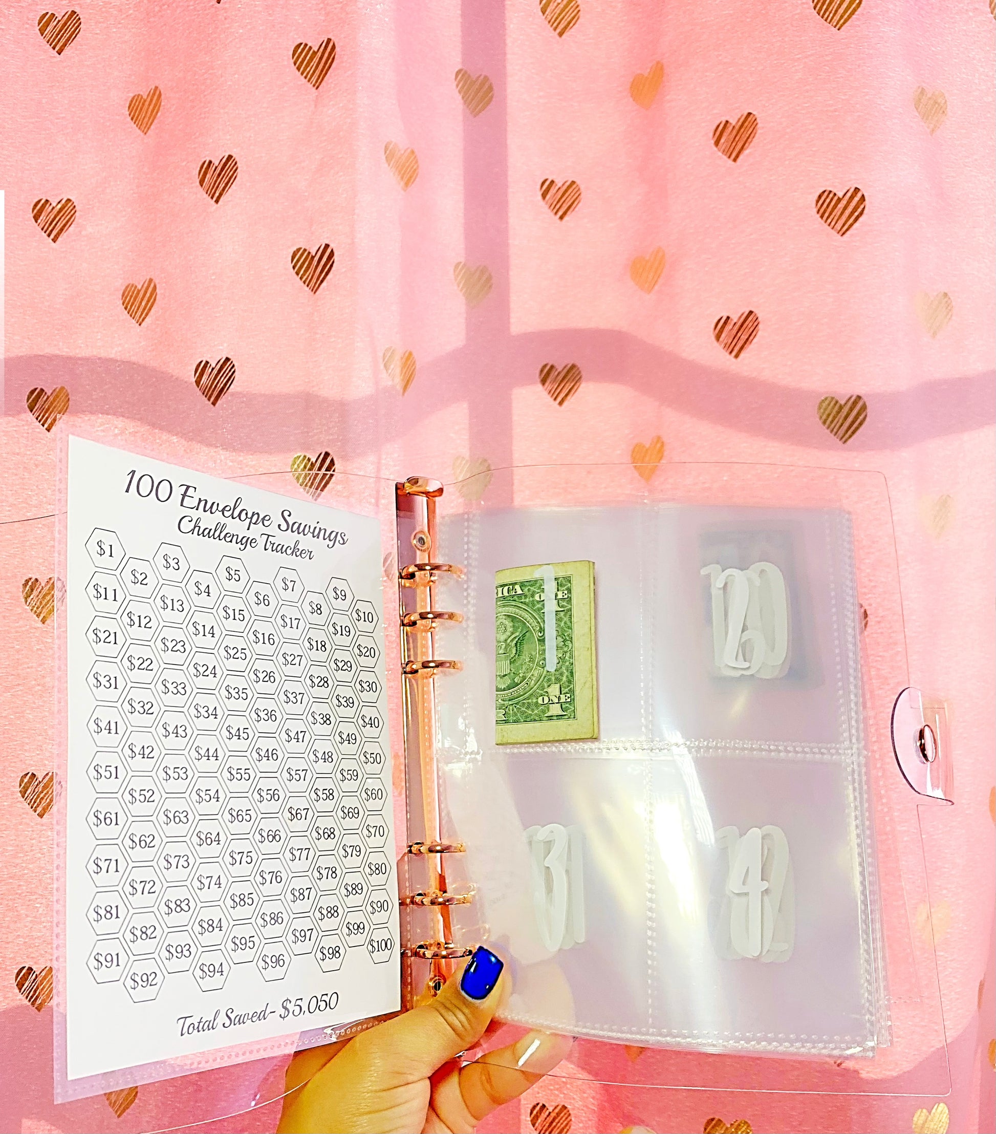 It’s recommended to start with $1 on day 1, double every day, and reach $5,050 after 100 days! But of course, you can fill the envelopes at your own pace. THE SOLE PURPOSE OF THIS CHALLENGE IS TO HELP YOU SAVE MONEY!