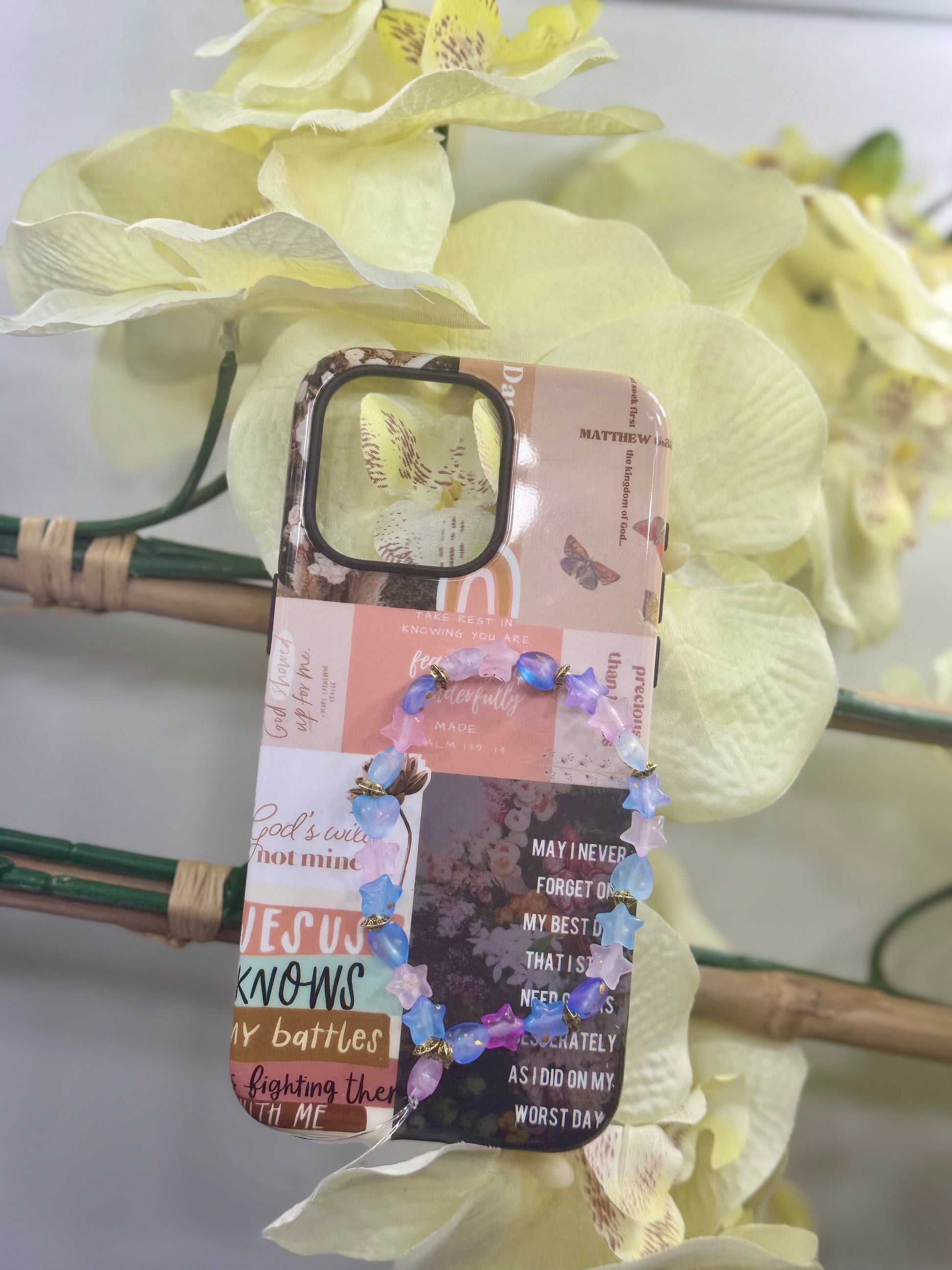 Enhance your accessories with our Majestic Royalty beaded wristlet phone charm. Each color and charm represent God's presence in your life, bringing comfort and peace to your daily routine. Keep your faith